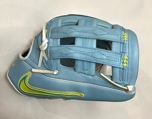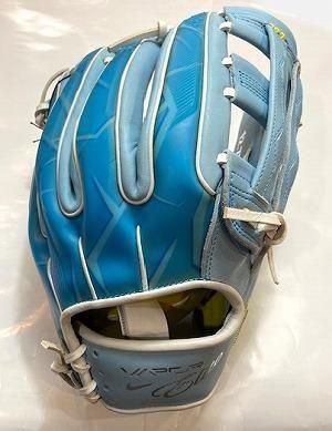 アメリカでみられる独特な柔らかい皮革と異素材を組み合わせたロナルド・アクーニャJr.選手モデルのグローブです。